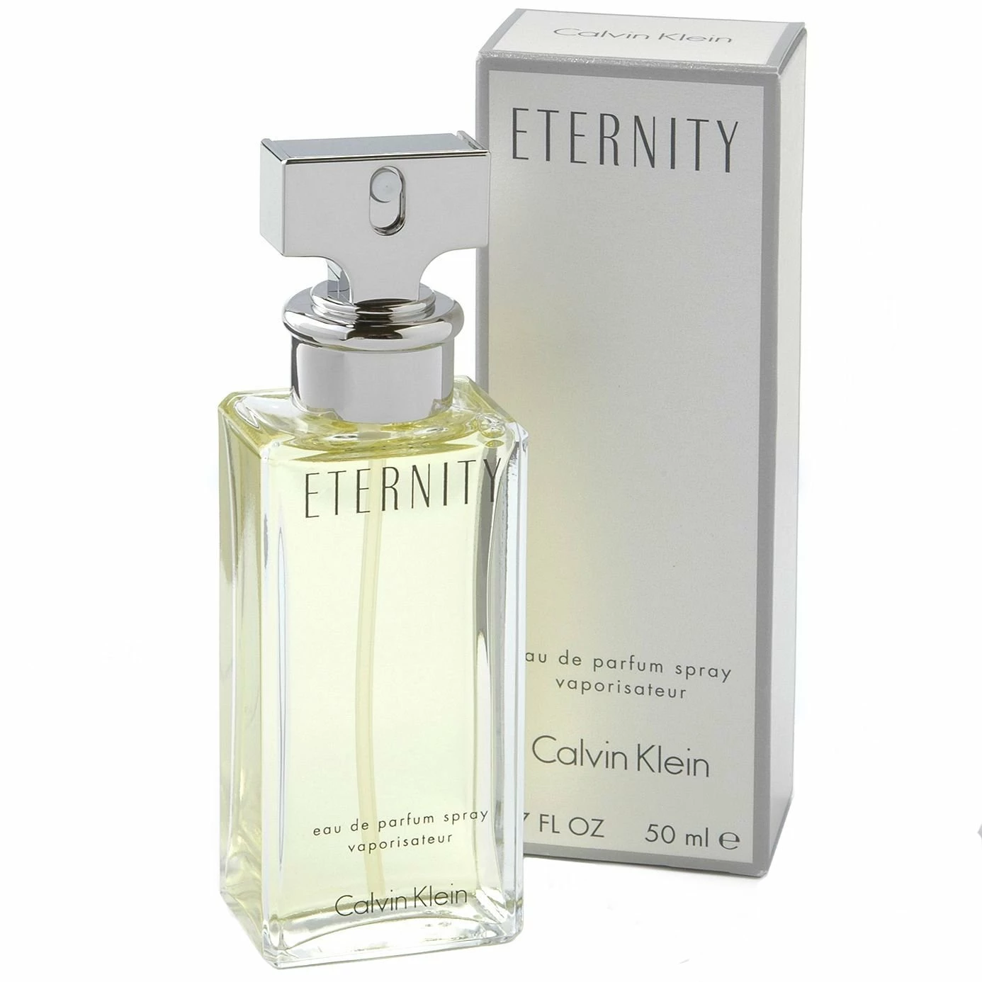 Calvin Klein Eternity 50ml è un profumo del gruppo Floreale da donna. Il Naso di questa fragranza è Sophia Grojsman. Le note di testa sono Agrumi, Note Verdi, Mandarino, Fresia e Salvia; le note di cuore sono Giglio, Garofano, Violetta, Gelsomino, Calendula, Mughetto, Rosa e Narciso; le note di base sono Sandalo, Ambra, Patchouli, Muschio Animale e Eliotropio.