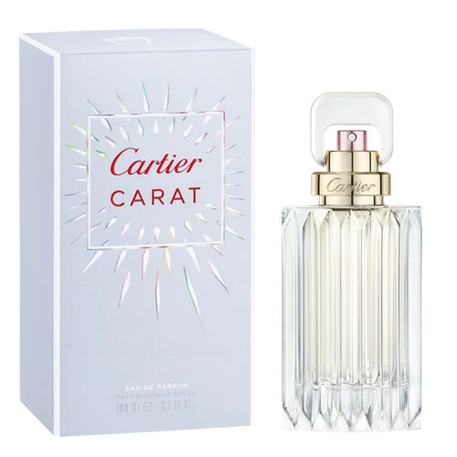 Cartier Carat 100 ml Eau de Parfume EDP Profumo Donna. Carat è descritto come un fiore pieno di vita, un’esplosione di piacere e freschezza che trabocca di gioia cristallina. La composizione nasce dalla combinazione di sette diversi tipi di fiori freschi, che danno origine ad un nuovo fiore astratto e vibrante, proprio come la luce emessa dal diamante. Fiori di violetta, giglio, giacinto, ylang ylang, narciso, caprifoglio e tulipano sono le essenze che danno origine a questa fragranza splendente.