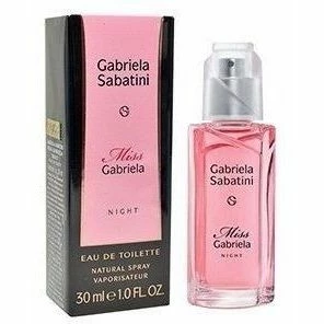 Gabriela Sabatini Miss Gabriela Night donna è un profumo floreale-fruttato. Le note di testa sono Frutto della Passione, Mora e Pompelmo; le note di cuore sono Fresia, Gelsomino e Gardenia; le note di fondo sono Cocco, Ambra, Muschio e Sandalo.