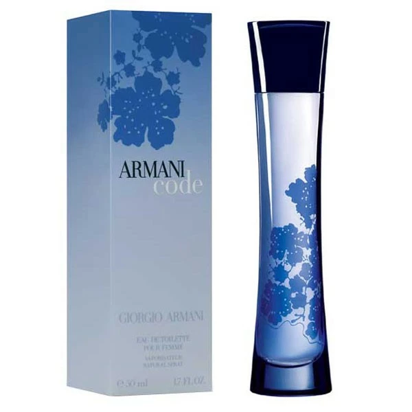 Armani propone un codice della femminilità, magnetico e seducente, Armani Code pour femme. Con quel suo nome così enigmatico, simile a un messaggio in codice, Armani Code è il riflesso del profumo maschile omonimo. Elisir moderno, profumo dalla femminilità sconvolgente e sublimata, Armani Code ‘rende omaggio alle donne dal potere magnetico’. La fragranza rivela il fascino sensuale e luminoso del fiore d`arancio in un flacone dalla silhouette notturna, ornato di un motivo orientale simile ad un merletto.