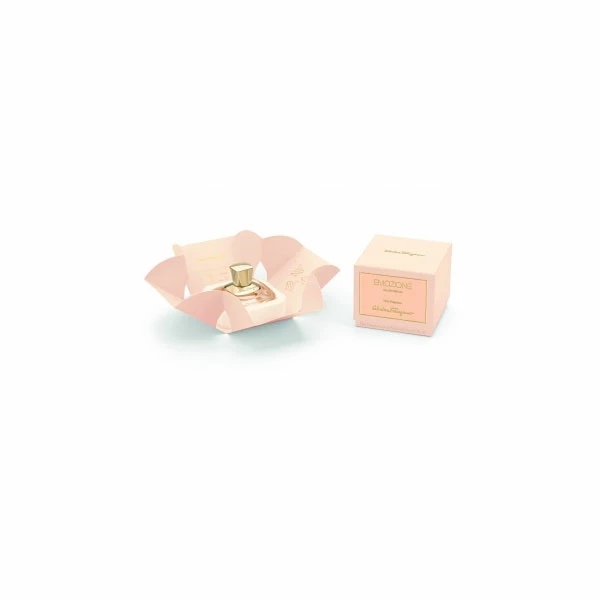 Alle donne che si distinguono per la loro armonia e bellezza interiore, Salvatore Ferragamo dedica Emozione, la nuova iconica Eau de Parfum della Maison fiorentina. La fragranza esprime tutta la ricchezza delle emozioni che infondono vero glamour alla vita. La quintessenza fiorita del vero lusso. Si tratta di una fragranza ricca di sfaccettature che uniscono accordi fioriti ad una raffinata texture legnosa, impreziosita da un tocco di sensuali note chypre. Sono presenti nella fragranza un accordo iniziale di iris e pesca bianca, un cuore di peonia, rosa bulgara e eliotropio e un fondo in cui al patchouli si mischia un inaspettato accordo che si chiama camoscio. La famiglia olfattiva è fiorita, legnosa, chypre.